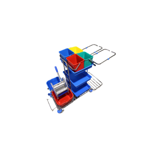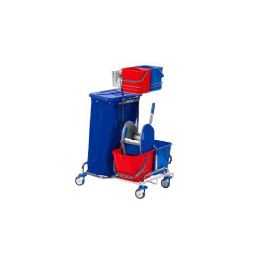 Eineimerwagen komplett mit 1x 17l Eimer inkl. Ausgießer und Presse+ Presseinlage. Das abgebildete Körbchen ist ein Sonderzubehör und kann zusätzlich erworben werden.